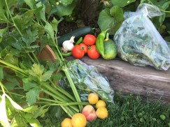 It has begun! Summer shares start today with plenty of sweetness. Pluots, Apricots and berries! The pluots are green on the outside and red on the inside. They will keep on the counter for a few days and will keep up to two weeks in the frig. Rinse your berries, dry and store in the refrigerator as well, or better yet, eat them up quickly! We are just in the beginning stages of apricots, so get out your recipe books and find some new ideas to use them up. Of course you will find garlic in your basket. It is garlic season and it’s so good for you. Herbs this week are fennel and dill. If herbs aren’t used during the week you can dry them in a food dehydrator or even in a very low temp oven to save for later in the season. Our tomatoes are just starting to ripen, along with summer squash and a few of these will be in your share as well, along with greens and other veggies in season. We are adding a small amount of lettuce this week and then it will come to an end until later fall. As the season goes, you will be finding heirloom tomatoes, squash and peppers of different colors. If you are into adventurous cooking and want to increase your cookbook library, we suggest and love…love…love the book called “Plenty” by Yotam Ottolenghi. EVERYTHING we have tried in this book has been excellent. I think it will open up a new way of cooking for you!